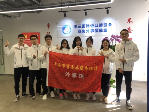 商务委外事保障大组涵盖了后勤组、证件组、综合组、外事活动组、信息组、酒店组等多个小组,志愿者们的服务场所并不在“四叶草”,而是在娄山关路的大后方,他们已经上岗整整27天了。开幕日当天,综合组和证件组的同学们作为商务委外事活动最后的一道保障防线,随值班领导在留岗值班,以应对紧急情况。外事活动组的同学迎来了首次加班日,他们在带教老师的带领下,沟通协调整个进博会期间市领导的重要经贸外事活动。信息组同学们则坚守在办公室,协助老师们更新 、整理 、上报各类信息。后勤组和其他组同学则为整个办公楼提供了餐饮、物资等各方面保障。虽然并未到进博会现场,但是他们一样坚守岗位,井然有序的完成了所有工作。