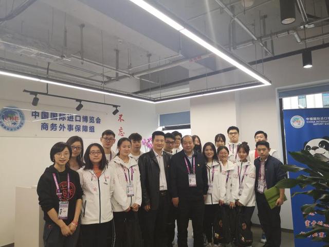 11月3日下午,蒋传海校长一行到进博园区看望慰问我校志愿者。团市委领导及我校职能部门负责人陪同慰问。