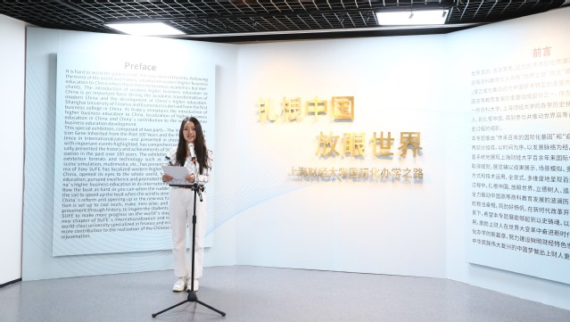 11月7日下午,“扎根中国放眼世界——上海财经大学国际化办学之路”专题展开幕式在上海财经大学育衡楼四楼临展厅举行。校党委书记许涛,副校长姚玲珍,校长助理李增泉,校党委常委、组织部部长刘庆生,校党委常委、宣传部部长章益国,校友、联合国贸易和发展会议经济事务官员梁国勇,以及各院(部、所)负责人、职能部门和直属单位负责人、教师代表、学生代表等约40余人参加了开幕式。开幕式由档案馆(校史馆、博物馆)馆长喻世红主持。