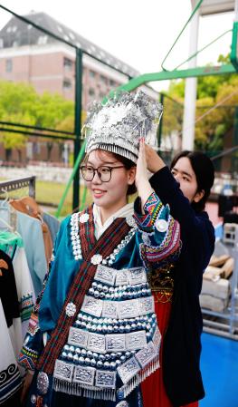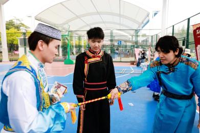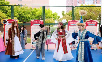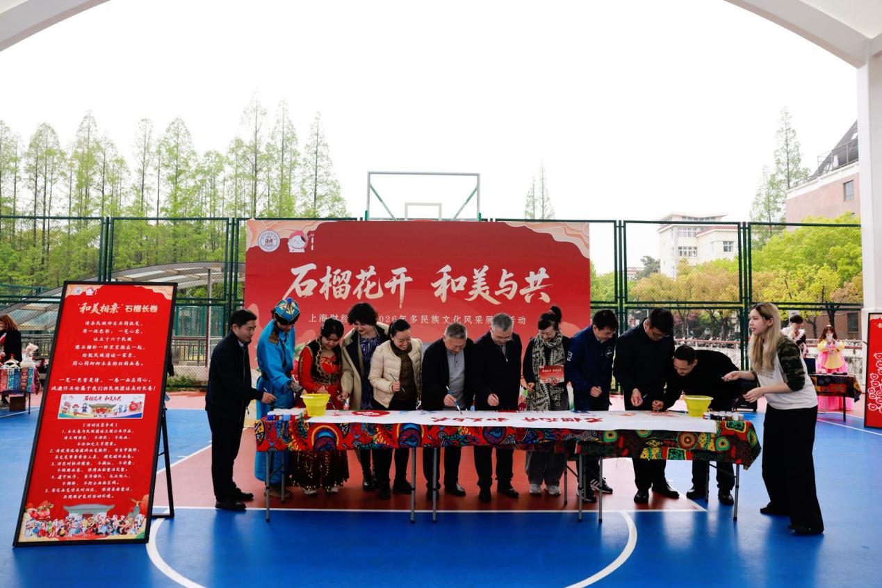 为深入学习贯彻党的二十大精神,以同心圆凝聚共识,以共有精神家园培根铸魂,推动铸牢中华民族共同体意识在校园落地生根,4月14日中午,由上海财经大学党委学生工作部/研究生工作部主办的“石榴花开 和美与共——多民族文化风采展示活动”在武东操场举行。各民族上财学子与校内外嘉宾齐聚现场,携手绘就了一幅中华民族一家亲的动人画卷。