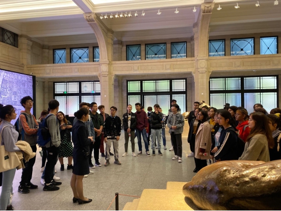 在上海市历史博物馆(上海革命历史博物馆),同学们认真聆听讲解,通过互动交流、听记结合的形式参观了“海上曙光、远古华章”、“云间溢彩、沪滨扬帆”、“上海开埠、国中之国”、“中西交汇、城市转型”、“辛亥革命、上海光复”“中共创建、开天辟地”、“经济中心、远东都会”、“同心协力、抗击日寇”、“争取民主、城市新生”的主题展览。通过讲解,同学们对上海革命的历史及其所蕴含的红色文化有了更直观的体验。同时,真切感受到了新时期上海发展的脉动,对伟大祖国、中华民族、中华文化、中国共产党、中国特色社会主义道路的认同得到了进一步提升,爱国热情得到了进一步的激发。