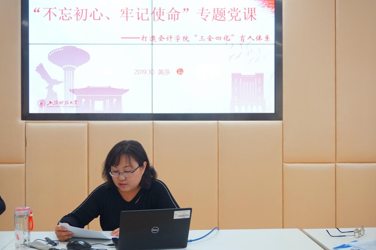 会计学院党委副书记黄莎针对学院思政育人工作展开《打造会计学院“三全四化”育人体系》调研分析。调研对象全面覆盖2019级新生、高年级团学干部、辅导员、专业教师等,通过问卷调研和访谈座谈方式,聚焦调研结果,提出系统规划。她谈到,学院要在“全员、全过程、全方位”的基础上实现“国际化、本土化、专业化、主流化”的人才培养目标,打造独具会院特色的“三全四化”育人体系,培育出一批传承优秀文化、探索创新知识、勇担时代使命的德智体美劳全面发展的社会主义建设者和接班人。