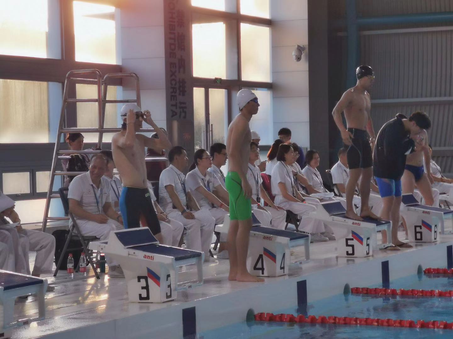 周嘉琪同学在第4泳道准备100米蛙泳决赛