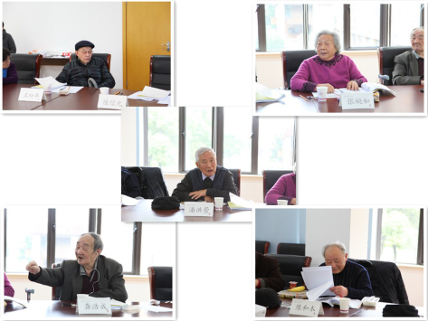 一大早,10位学校的老领导、老专家不辞辛苦、冒着风雨,准时赶到学校育衡楼会议室。他们是原校党委书记潘洪萱,原校党委副书记张婉如,原副校长、中国人民银行上海分行行长龚浩成,原副校长王松年,原副校长陈和本,原经济系主任、研究生部主任张淑智,原经济系主任、出版社总编裘逸娟,原统计系主任郑菊生,原图书馆馆长张次博,原出版社编辑王家泉等。到会的10位老领导、老专家中年龄最小者76岁,最长者90岁,而龚浩成、王松年、裘逸娟三位老同志更是1947年就已经进校的“元老级”人物。