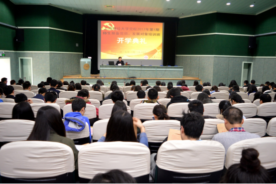 3月26日上午,我校2017年第1期师生预备党员、发展对象培训班开学典礼在行政楼二楼报告厅举行,全体师生预备党员、发展对象和分党校负责老师共同参加了本期开学典礼,典礼由党校副校长章忠民教授主持。