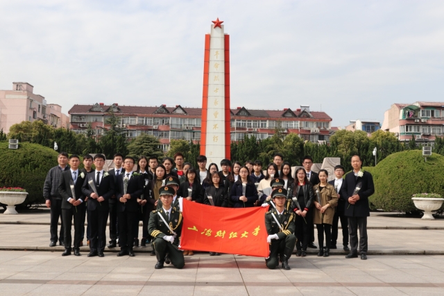 最后,由军拓团团长铁金堂在纪念碑下带领同学们庄严宣誓:承诺将努力学习,继承和发扬革命先烈的遗志,为祖国的建设和发展奉献自己的青春和热血。之后,全体人员向革命烈士纪念碑深深三鞠躬。