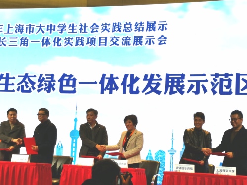 会上还举行了服务长三角生态绿色一体化发展示范区建设项目签约仪式,我校法学院党委副书记罗山鸿代表法学院学生项目“共保联治,法治护航——长三角示范区固体废物处置区域协同治理机制”与青浦区生态环境局领导共同签署了合作协议,后续双方将继续推动项目研究的深入及成果转化工作。