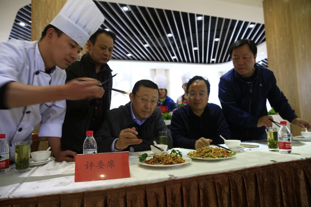 下午14:00,副校长刘兰娟宣布本次厨艺大赛开幕。后勤实业中心为本次大赛提供61种食材供选手搭配使用。比赛分为“规定菜”、“选材菜”2个菜肴。规定菜肴为鱼香肉丝,选材菜则是由每组选手任选不超过5种食材烹制一道菜肴。参赛选手必须现场切配加工,4 0分钟内完成两个菜品的制作。