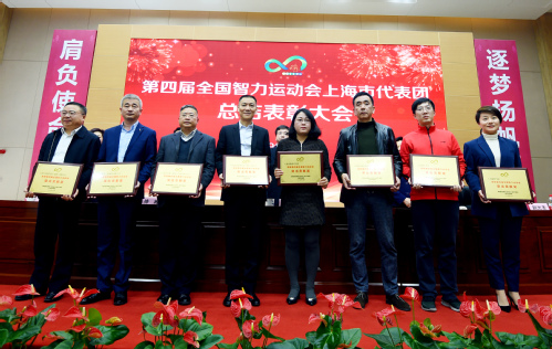 会上,我校被授予第四届全国智力运动会上海市代表团“突出贡献奖”称号,杜富华、张涛等7人被授予第四届全国智力运动会上海市代表团个人“突出贡献奖”称号,白金石等5人被授予第四届全国智力运动会上海市代表团个人“贡献奖”称号。
