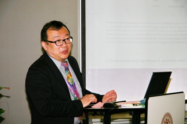 在学术讨论阶段,中日学者就程恩富教授的发言进行了热烈的讨论。喜多忠文教授对程恩富教授的发言表示感谢,并与程教授进行了深入的探讨。首先,针对中国GDP6.5%的增速,程教授表示,该增速会长期保持稳定,并且,这种稳定与中国社会主义社会的性质密不可分。对此喜多先生也表示赞同,他同时提出,目前七个发达国家的GDP人均大约保持在4万美元左右,中国想要达到这个目标,可能任重道远。喜多先生举例说,中国的腾讯、百度、华为等公司都在急速发展中,这些公司能够如此快速发展,与政府扶持本国企业有关。日本、韩国也是在外国企业进驻本土时,采用高关税的手段进行抑制,来扶持本国企业的发展。在中国,中外资进行合作时,技术的发展并不是简单的交接,而需要进一步的研究从而转化为自身的技术能力。香港和新加坡因为人数较少,可以通过IT产业和金融产业提高经济总量,从而增加人均GDP。而对中国而言,还是需要制造业这种基础性的行业发展来提高人均GDP。目前中国的人均GDP是8500美元,而想要达到发达国家的水平,就要向日本和德国学习,培养一批有品牌价值的企业,如松下、索尼、丰田等,以与中国的国情相匹配。日本大约有100个左右可直接满足消费者需求的著名企业,相对而言,中国和韩国则远远落后。喜多教授认为,中国想要达到这个水平,一是调整中国经济结构,二是的经济决策时,政府要考虑整个社会的总体利益。日本的企业非常注重其技术的独特性,孜孜不倦地关注于培养自身的技术优势。而中国的不少企业只关注于投资最热门的行业。中国企业产品的特点是“快”和“便宜”,在需要高技术、高精度的领域里,还是落后于日本的。另一个是制度问题,比如中国存在很明显的结账困难的问题,因而衍生了讨债公司的产生。