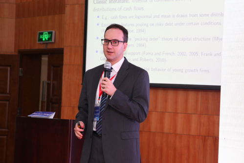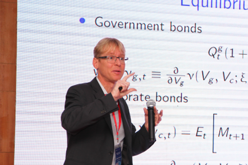 Patrick Bolton 教授报告主题为 "Leverage Dynamics and Financial Flexibility", 他通过构建一个非完全市场和带股权融资成本下的动态资本结构理论,证明债务是持续经营的外部融资的边际来源。当企业临近或超过内生性债务融资能力 (debt capacity) 时,只能依赖成本高昂的外部股权融资或者违约。其理论产生的杠杆动态意味着企业在获利时只需偿还债务,在遭受损失时会增加债务,结论与现实的实证证据相符合。