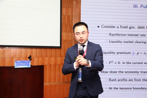 紧接着,Ye Li 教授作题为 "Intermediated and Public Supply of Liquidity" 的报告。他指出,金融中介机构发行大部分流动性证券,使得企业以现金形式大量持有其债务来缓冲难以承受的投资冲击,但因顺周期的中介杠杆承担不稳定后果。若引入政府债务作为流动性来源与之竞争,则产生“双刃剑”效应,要么满足每个国家的公司持有更多流动性,但通过挤压中介机构利润和放大顺周期杠杆,增加中介危机的发生频率和持续时间;要么政府债务无法满足企业流动性需求时,中介机构仍充当边际流动性的提供者并将占主导地位,公共流动性的总体影响将是负面的。