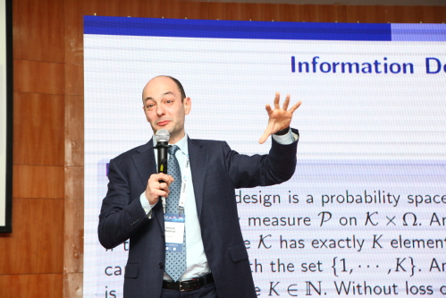 Semyon Malamud 教授的报告主题为 "Policy Announcement Design",针对央行在向市场和公众传递宏观政策(如贸易战、税收改革)等信息时容易导致强烈反应的问题进行研究,证明了政策制定者的最优策略是将经济运行状况划分为有限个区间,并且只让公众知道现在所处的区间,当政策制定者的信念与公众之前的期望一致则达到最优沟通。论文采用信息相关性矩阵 (information relevance matrix) 来描述政策制定者的权衡,并将该矩阵的特征向量称为主要信息成分 (principal information components, PIC)。高特征向量 PICs 决定了政策制定者最需要准确表述的信息。