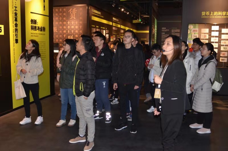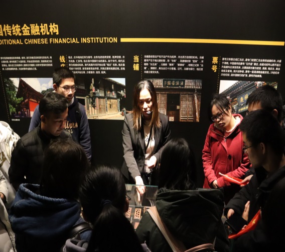 在上海科技金融博物馆,讲解员详细为同学们讲述了中国金融十大人物与中国金融十大事件的传奇故事,引领同学们依次参观了“创新:科技与金融”、“探索:科技金融全球掠影”、“上海碳金融史”、“崛起:科技金融在中国”四个展馆;讲解过程中,同学们好奇提问,寓教于乐,纵享“沉浸式教学”。