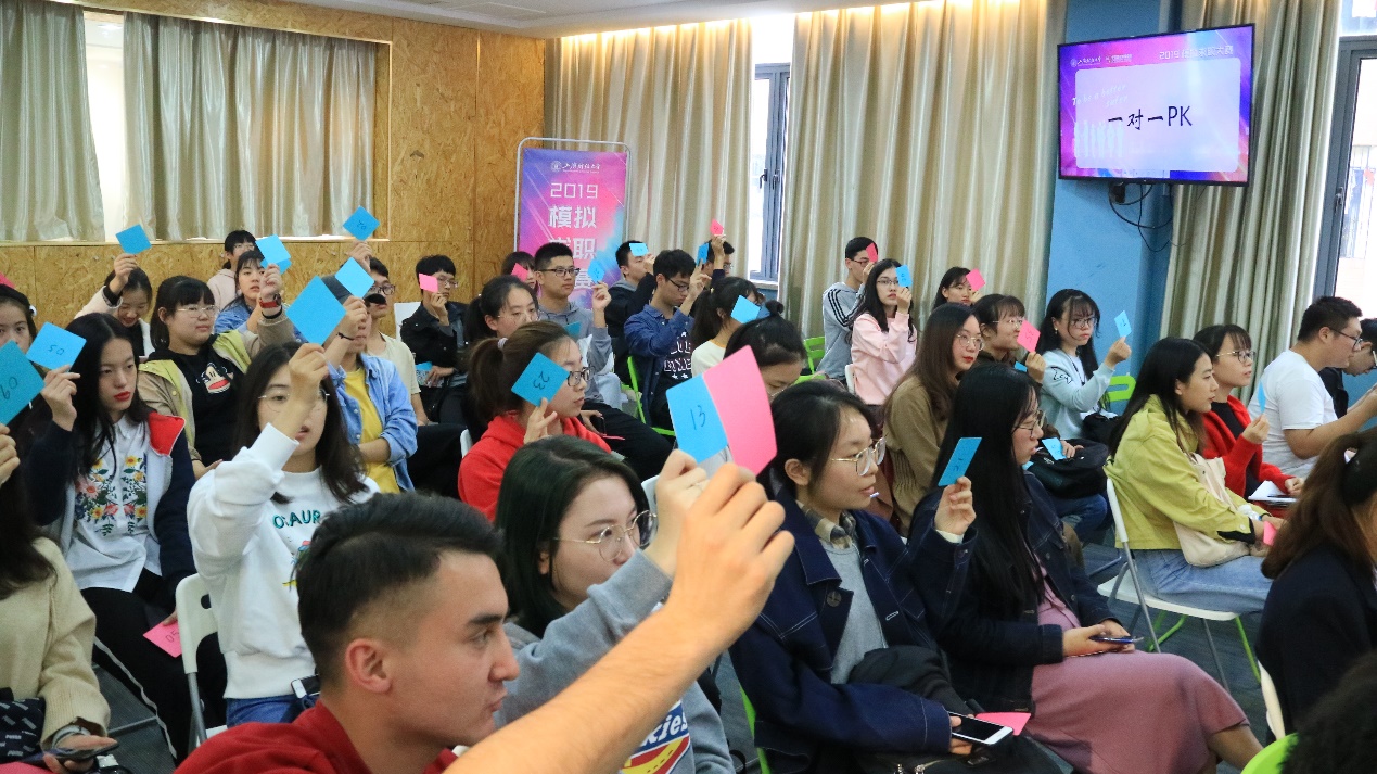 为迎接本次大赛,我校积极筹备,组织开展模拟求职大赛校内赛。经过初赛简历筛选、复赛无领导小组讨论、决赛单面等系列赛程,以及赛间培训、校内外嘉宾评委点评等环节,参赛学生更好地认知了自身特点、明确了未来的职业发展方向,同时,比赛也锻炼了选手们的求职能力,选拔并推荐了一批优秀学生参加市赛。