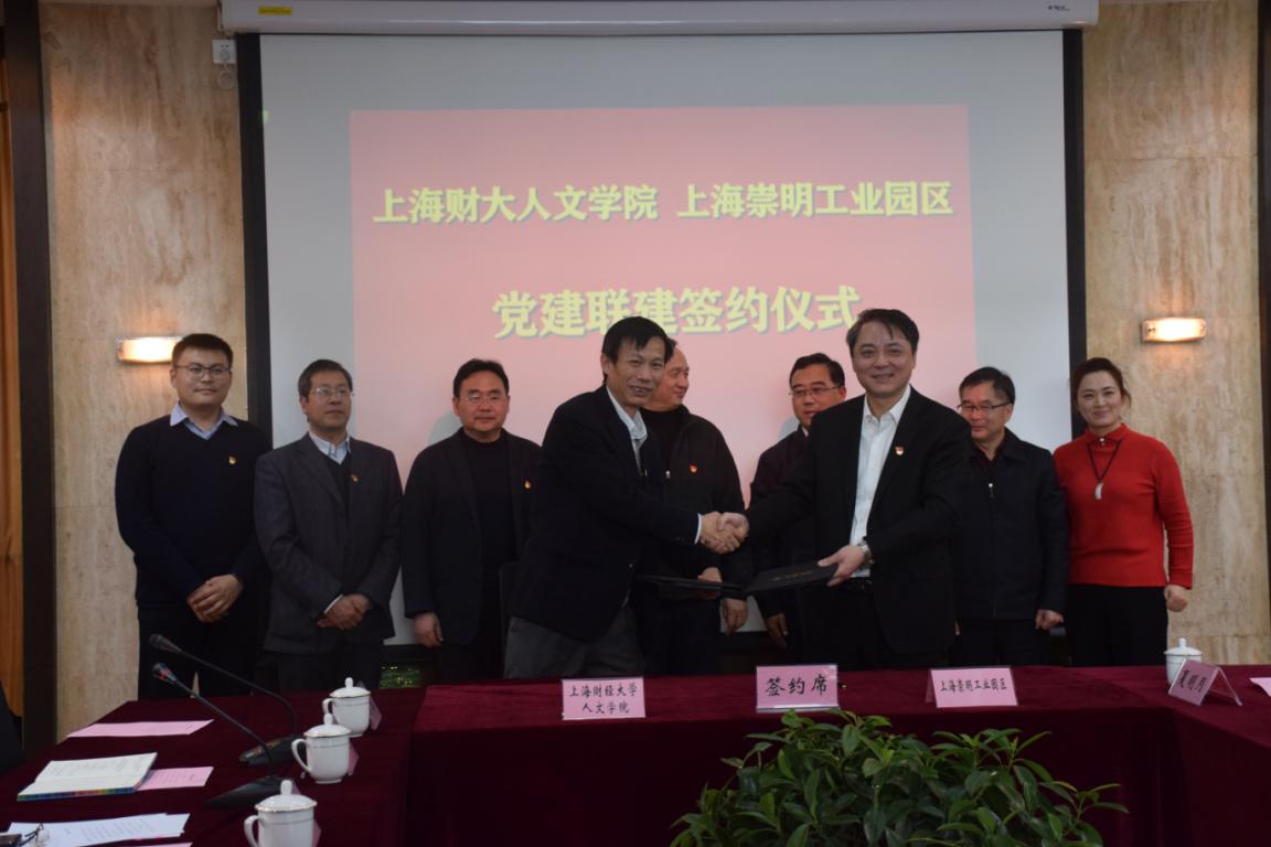 在崇明工业园区,中共上海财经大学人文学院党委与中共上海崇明工业园区工作委员会举行了党建联建签约活动。会议由中共上海崇明工业园区工作委员会书记张永华主持。人文学院党委书记范宝舟和崇明工业园区工作委员会书记张永华各自介绍相关情况以后,签订了《上海财经大学人文学院——崇明工业园区党建联建协议书》。