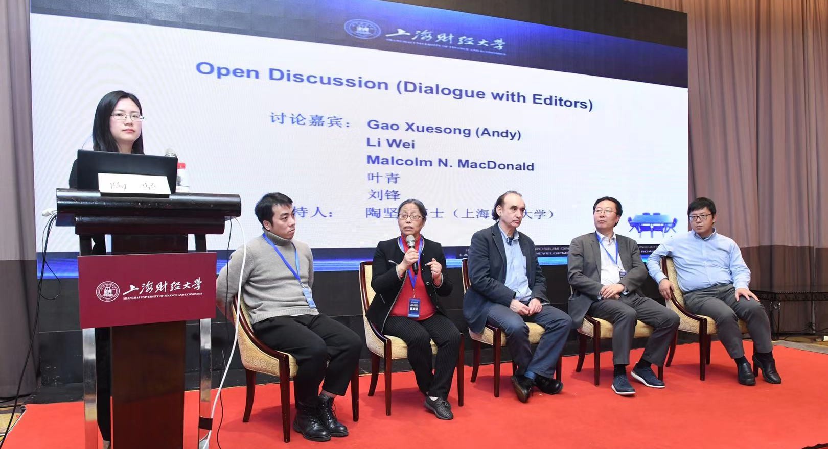 在主旨发言结束之后,大会开设参会者与期刊主编对话环节,参与此环节的嘉宾有SSCI一区期刊International Journal of Bilingualism and Bilingual Education 主编李嵬教授、SSCI一区期刊Language and Intercultural Communication主编Malcolm N. MacDonald教授、SSCI一区期刊System主编高雪松教授、CSSCI期刊《语言文字应用》执行主编叶青编审、CSSCI期刊《外语教学》编辑刘锋博士。与会者踊跃参与,就期刊文章的质量把控、跨学科文章的发表等方面提出问题,五位主编从各自不同的期刊角度出发回答了问题,并且与与会者开展了富有建设性的讨论。