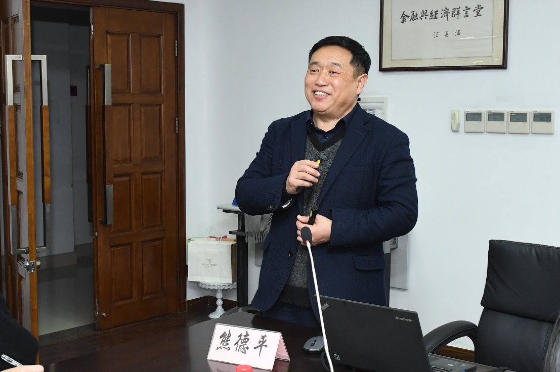 随后,云南财经大学金融学院院长熊德平教授、上海财经大学上海国际金融中心研究院行政主管张盛丽老师分别汇报了2019第五届“同德夏令营”活动和2019第五届“一带一路”全国高校学生征文大赛的举办情况。