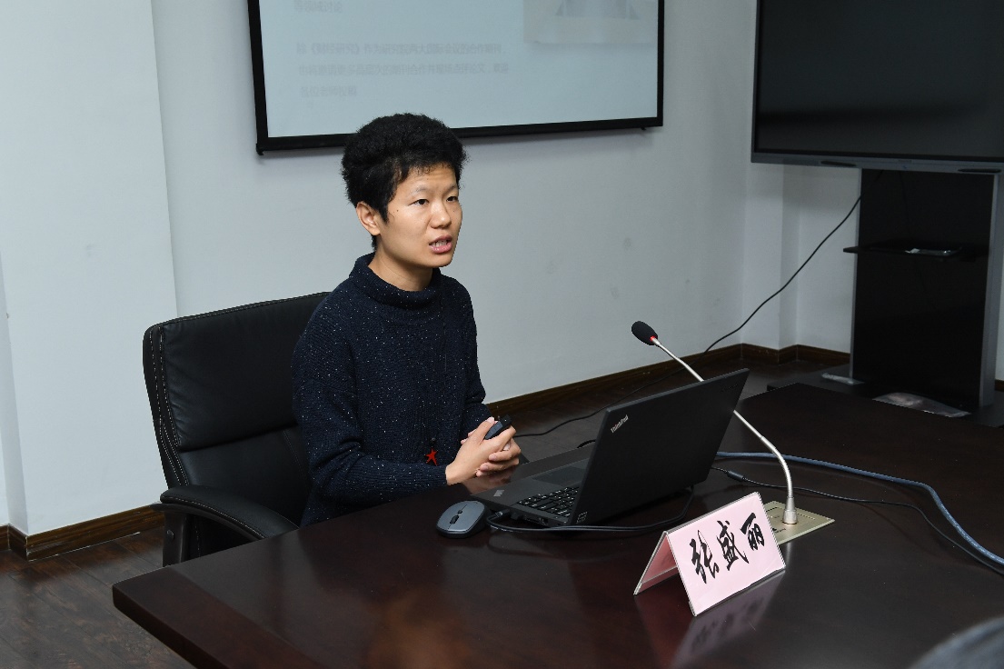上海财经大学上海国际金融中心研究院行政主管张盛丽老师向参会领导全面介绍了第五届“一带一路”全国高校学生征文大赛的活动流程,汇报了征文大赛不同阶段的工作重点及活动情况,并重点介绍了未来征文大赛与上海财经大学期刊社的进一步深度合作计划。
