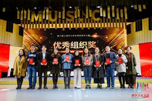 经过两个小时的现场激烈角逐,最终,来自上海海洋大学的刘锦波选手通过一曲《麻麻歌》,以悠扬的音乐旋律、成熟的舞台表现深深打动了现场的评委与观众,摘得本届原创音乐大赛桂冠、上海财经大学的乔赫奇以原创歌曲《大学要快乐》获得亚军、上海立信会计金融学院的宋佳欣以原创歌曲《孩子》荣获季军。同时,宋佳欣、乔赫奇、高怡然、胡真&朱佳韵还分别获得了单项奖最佳作词奖、最佳作曲奖、最佳演唱奖、最佳人气奖。上海交通大学、同济大学、上海财经大学、上海师范大学等9所高校获得优秀组织奖。