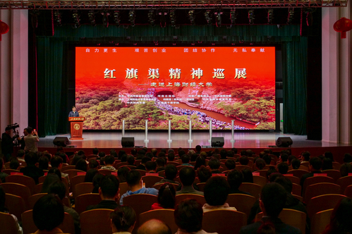作者:郭娜2024-03-29 20:393月29日,“红旗渠精神进校园巡展”在上海财经大学启动。一个多甲子前,有一群人用了近10年时间,靠着一锤、一钎、一双手,在千峰如削的太行山上凿出了长达1500公里的“人工天河”——红旗渠,插上了一面不朽的精神旗帜。3月29日,“红旗渠精神进校园巡展”走进上海财经大学,与新时代的大学生开启了一场穿越时空的对话。本次红旗渠精神巡展活动通过图片展览、实物展示、现场讲解、主题宣讲等形式,带着师生重温那段波澜壮阔的历史,展现红旗渠精神在实践中的传承发展,生动诠释红旗渠精神的恒久价值和旺盛生命力。进一步教育引导广大青年学生,传承红色基因,继承和发扬吃苦耐劳、自力更生、艰苦奋斗的精神。据上海财经...